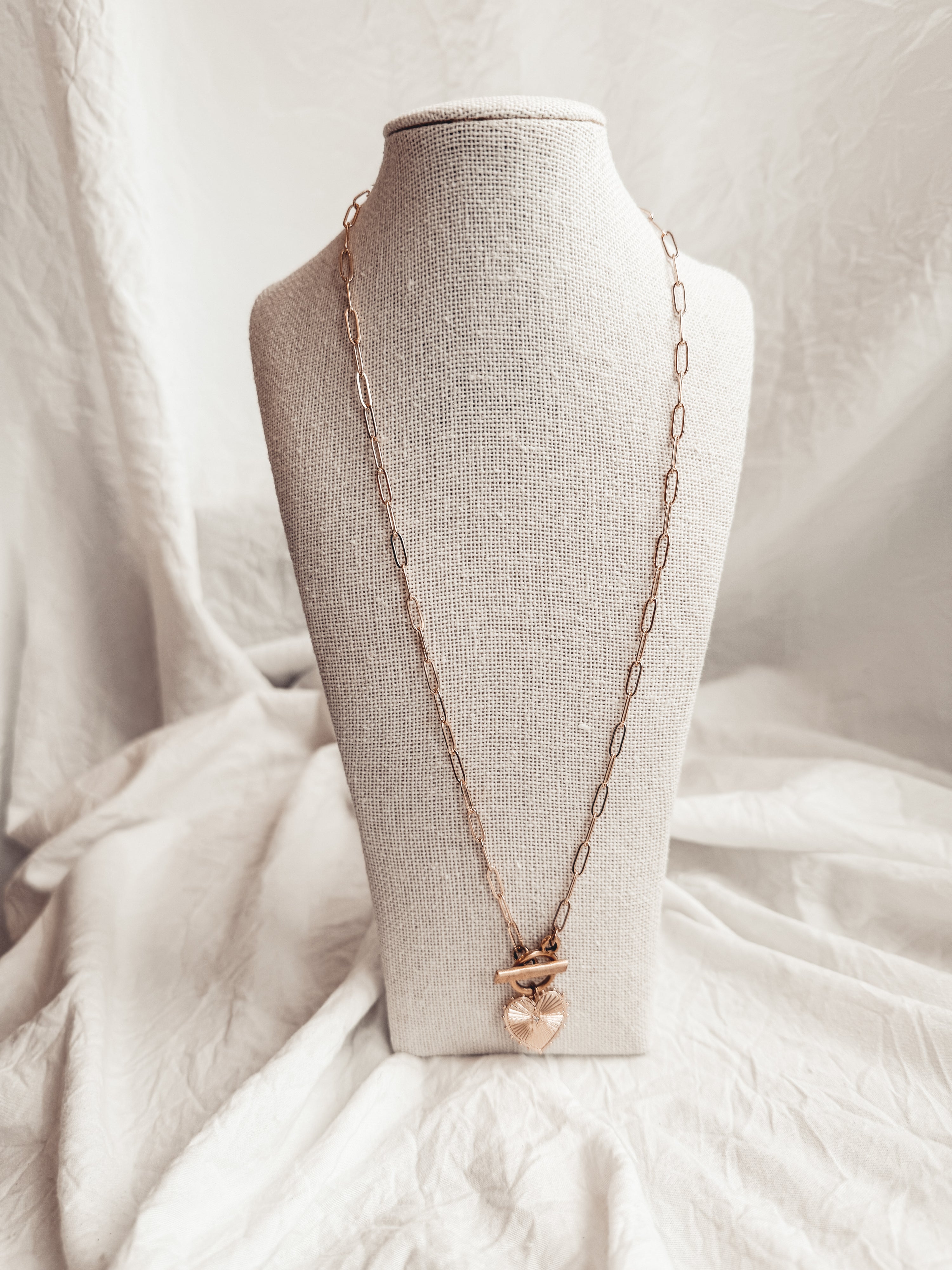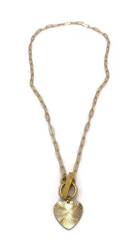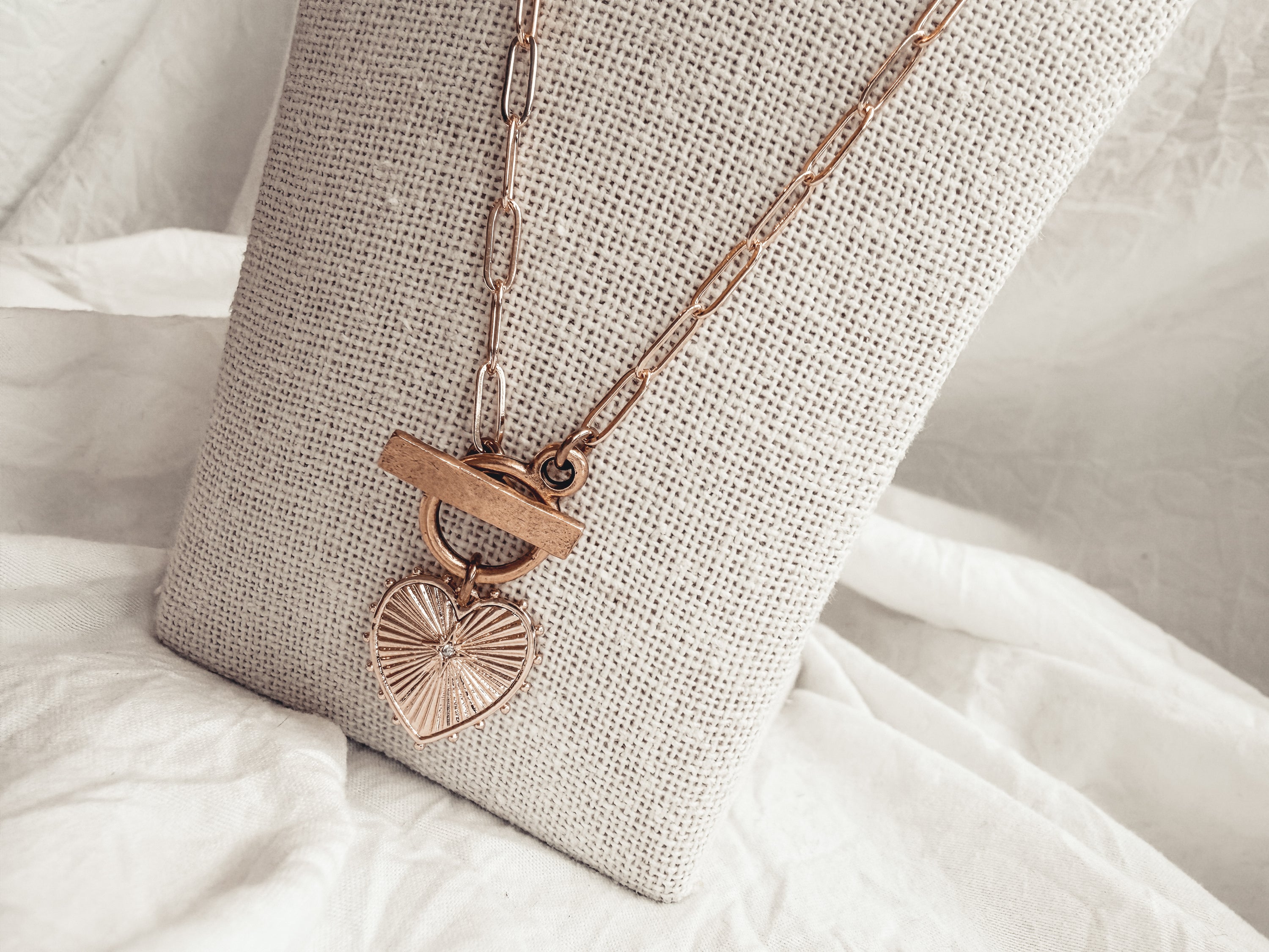 We heart this toggle-closure Heart Pendant - perfect for layering or wearing alone! It is absolutely adorable for every day wear! Avoid showering or sleeping with this piece left on as it is gold-plated and the plating can be damaged.