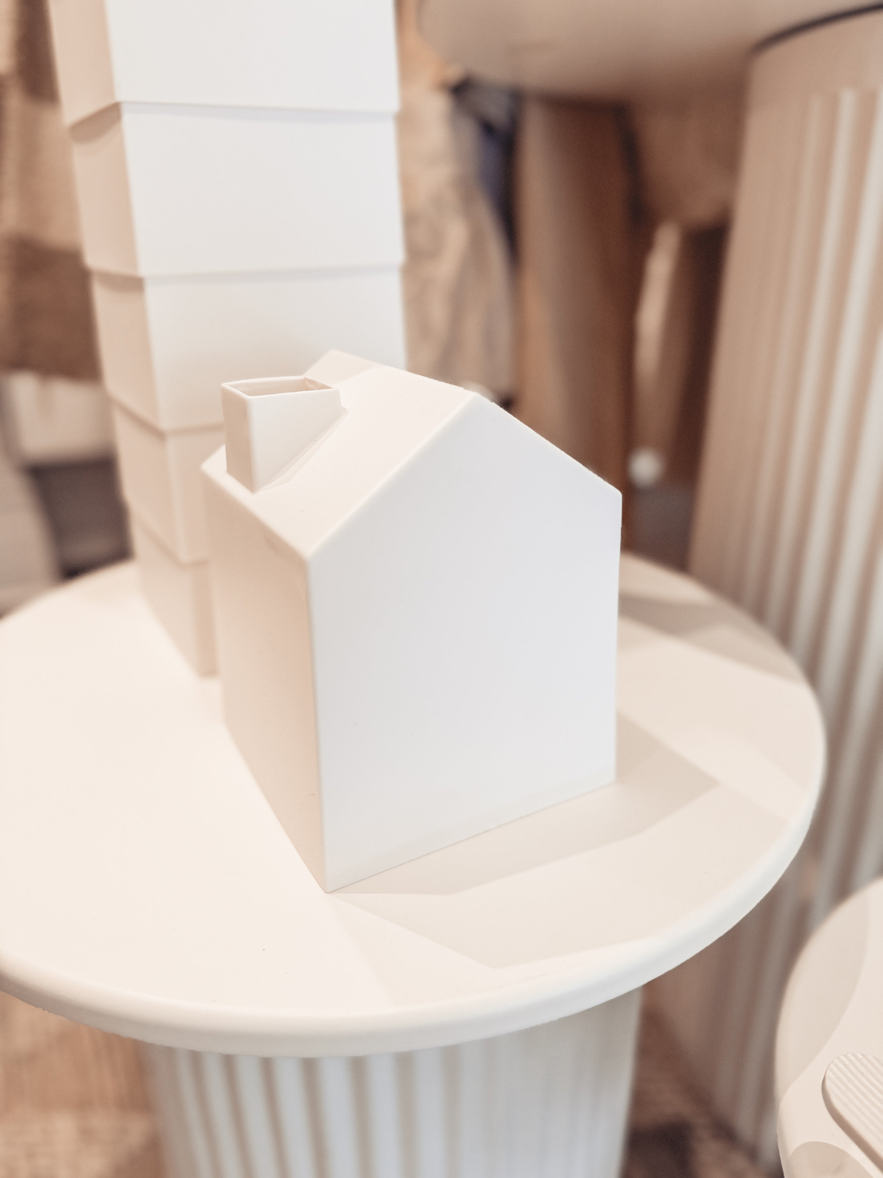 The House Tissue Cover is a playful design makes your standard square tissue box a lot less boring. Our tissue box holder is shaped like a house with a tiny chimney stack that dispenses your tissue, making it look like a little cloud of smoke. Perfect for disguising standard boutique (cube-shaped) tissue boxes and adding a decorative touch to your bathroom, bedroom, or any other room in your home or office. Casa comes in various colors, measures 6.88 x 5.13 x 5.13" (17 x 13 x 13 cm) and is made from durable, easy-to-clean polypropylene.