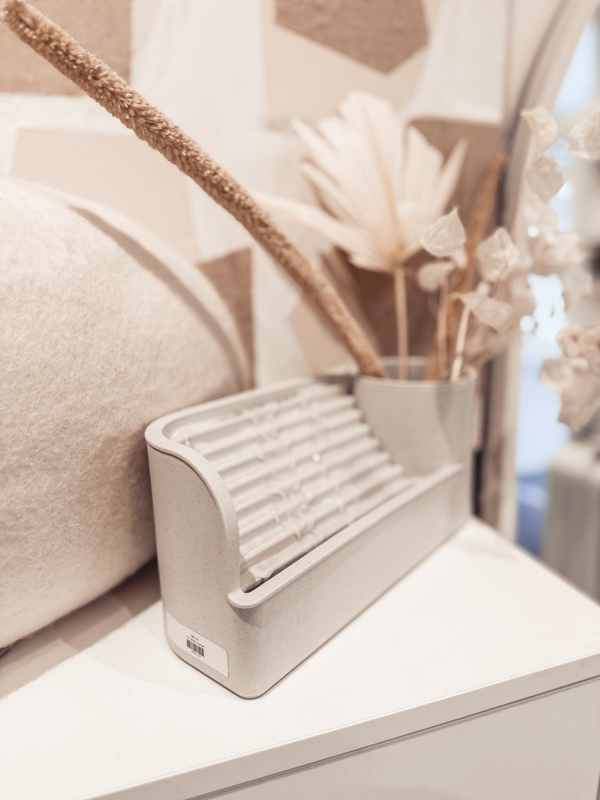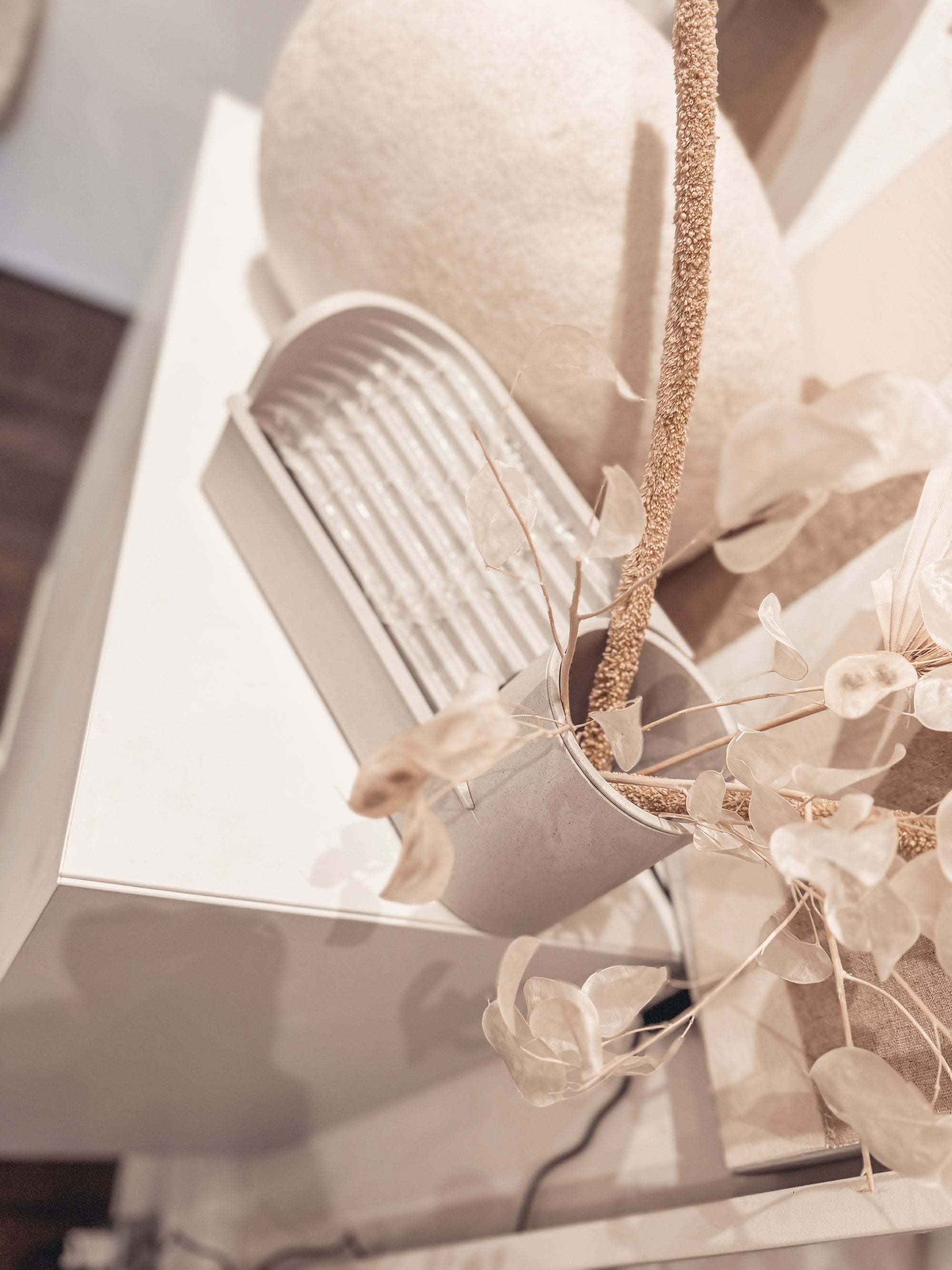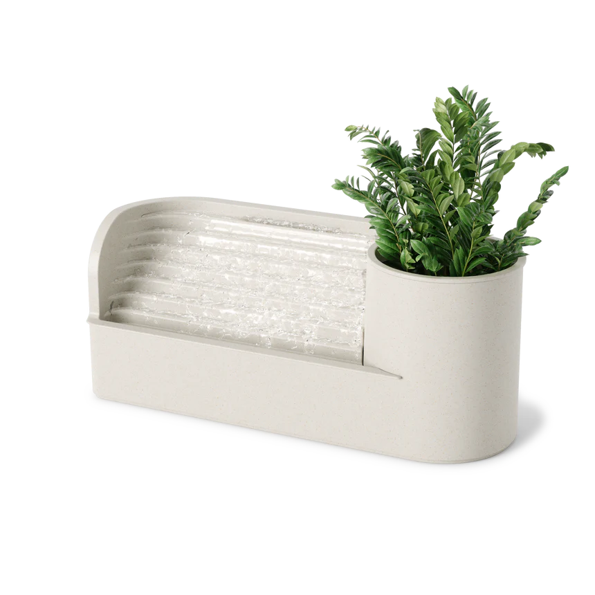 Introducing the Zen Beige Fountain: modern style and convenience meet relaxation! This tabletop fountain offers more than just ambiance to any home or office space; it also helps improve air quality by adding moisture to dry air. The internal MAX/MIN water line indicates how much water is needed to smoothly run the Fountain. Keeping water within these lines controls the level of sound creating the gentle, soothing trickle of water. The Stream has plenty of room for 3.5" planters or stationaries, so you can add elements to this piece that will complement your décor perfectly. Since it's powered by a simple USB plug, you won't have to worry about cords and can easily control it with the on/off switch on the cord. Will run for 50 hours between refills at max water line. Measures 12.5 x 4.5 x 5.38" (32 x 11 x 14 cm). Do not place on surfaces or tabletops that have potential to be water damaged. This fountain is composed of recycled plastic with a recycled mixed wood fibre, adding a natural texture to the surface. This material is easy to clean, and long lasting. For consistent water flow, we recommend allowing the water to run for a few days. If you are hearing the motor, ensure you are keeping water within the min-max line. If motor starts grinding, STREAM needs to be topped up with more water.