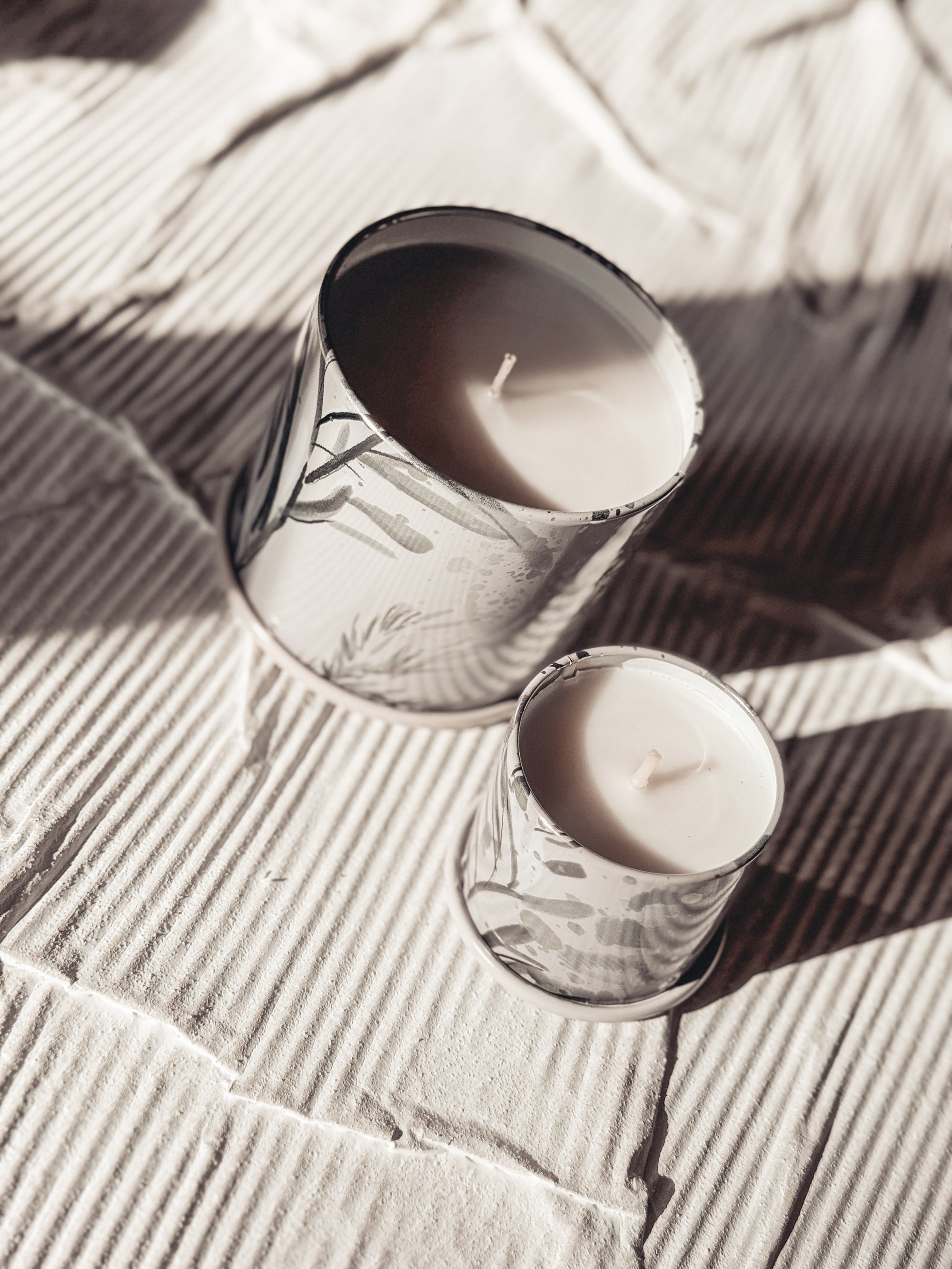 Perfect for gifting and decorating the holiday home. Designed as a pop of pattern, our vanity tins have a full wrap label on textured stock, interior pattern with metallic details.. We use tin for its lovely illuminating qualities and because it is infinitely recyclable.