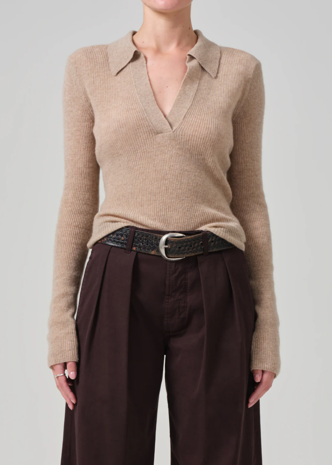 Crafted from an ultra-fine wool, the Simone Polo is designed with a slightly-sheer texture and collared v neck.