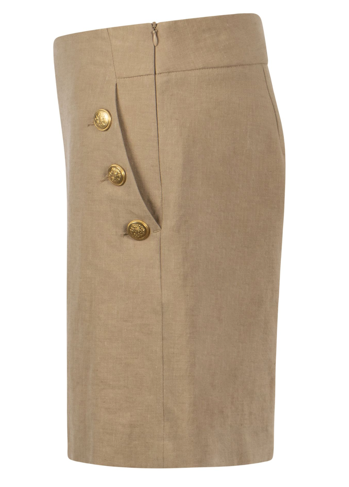 Features: Side welt pockets, buttons on pocket opening, welt pocket on back right