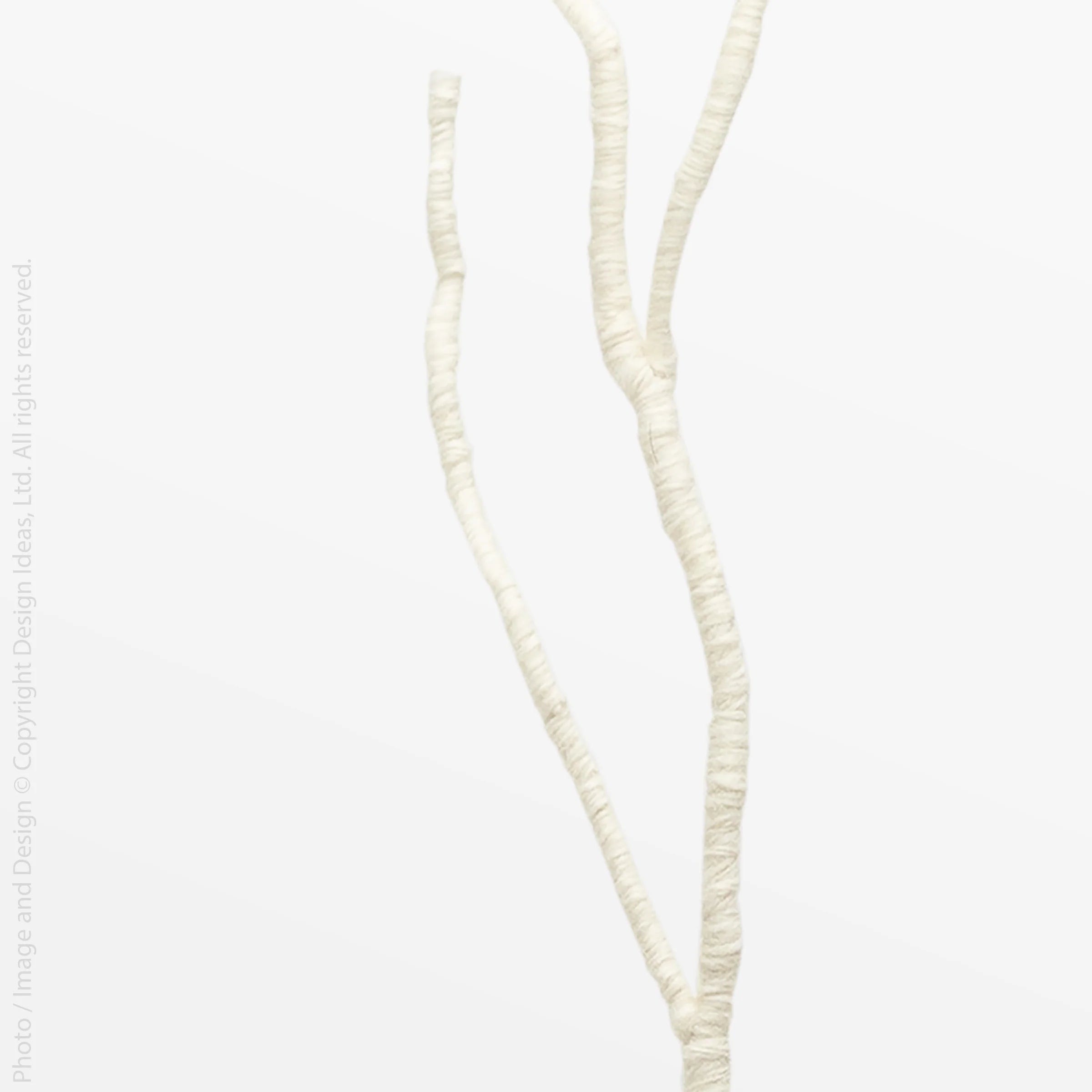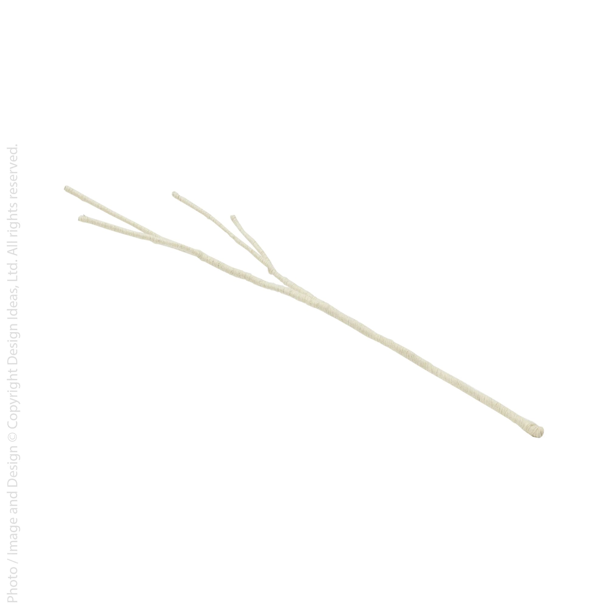 Lilliput branches are metal-based and wrapped in 100% snow-white cotton material. These branches are made to be what you need them to be. Group together in a vase for a snowy stemmed arrangement. Are you forgoing a tree this season but still want something festive? Use the Lilliput branches as your tree and hang some ornaments from them. The possibilities are endless!