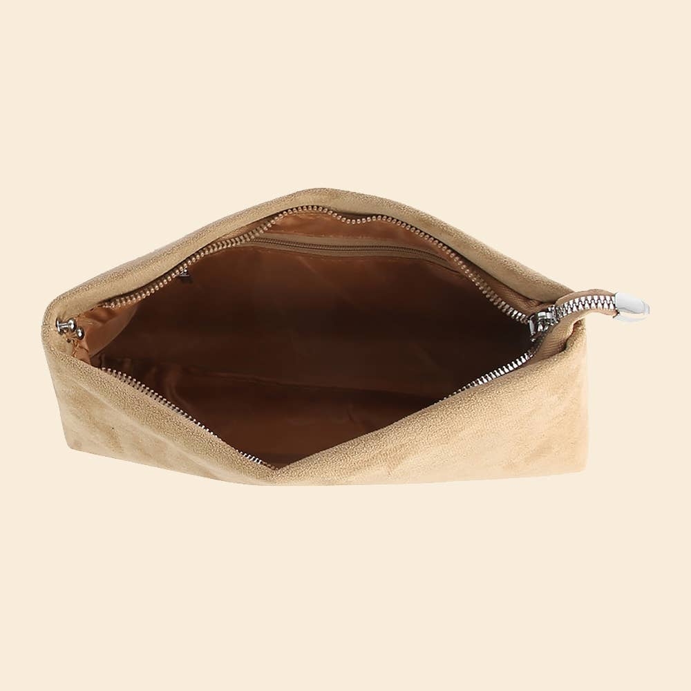Faux Suede Zip Top Closure Gold-Tone Hardware Detachable Shoulder Strap